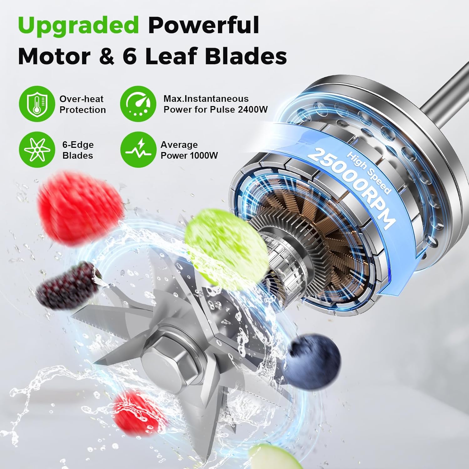 - [Stainless Steel Blades – Heavy Duty Ice Crushing & Smoothie Blender] Equipped with ultra-sharp stainless steel blades, blenders for kitchen effortlessly crushes ice, frozen fruits, and tough ingredients. Ideal for making smooth nut butters, baby food, sauces, and smoothies, it delivers precise, consistent textures in every blend.