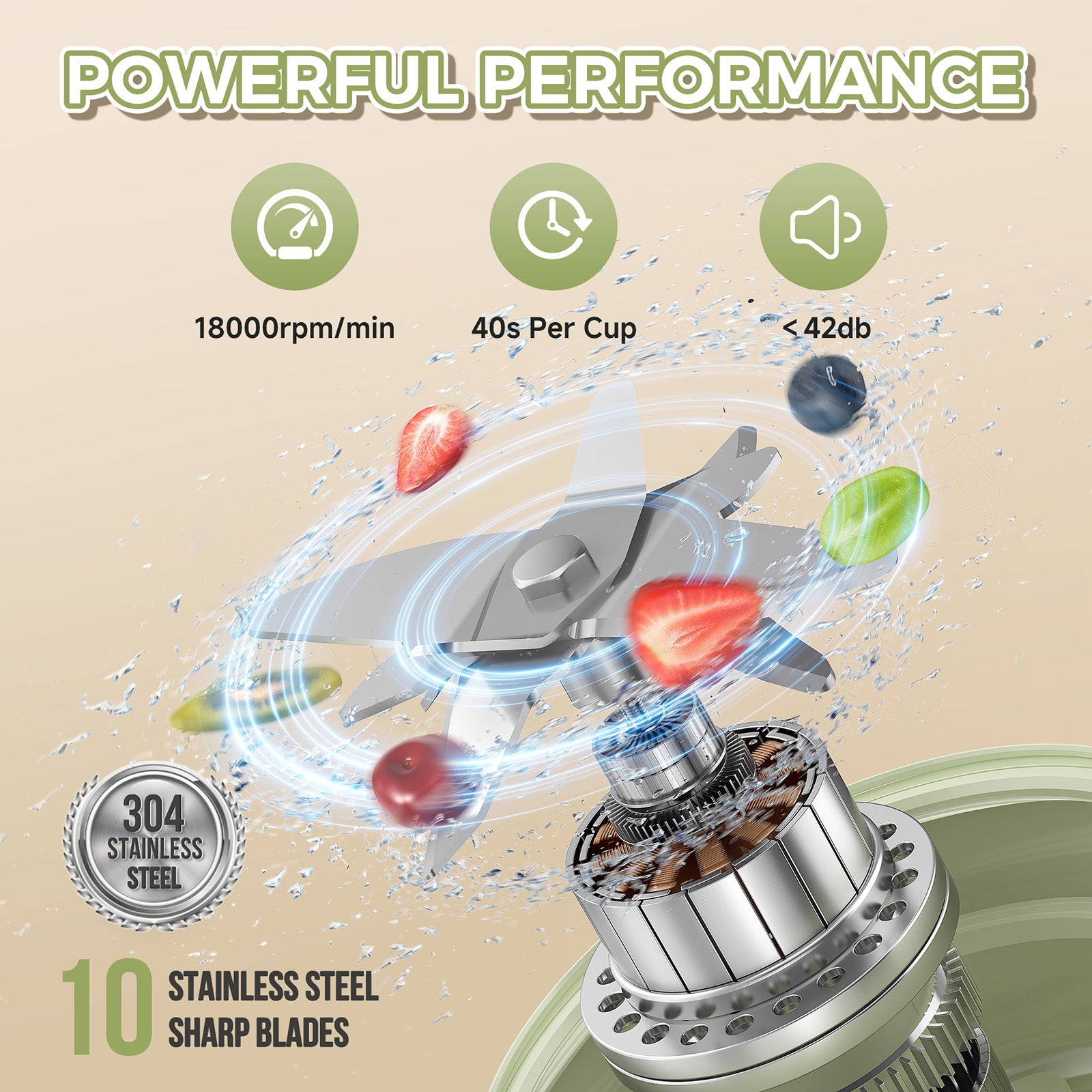 - 【 Upgraded 10-Leaf Stainless Steel Blade 】 Equipped with a high-speed 10-leaf stainless steel blade rotating at 25,000 RPM, this blender effortlessly pulverizes ingredients into smooth, delicious shakes, smoothies, and frozen drinks in just 10-20 seconds. Making your favorite drinks has never been easier!