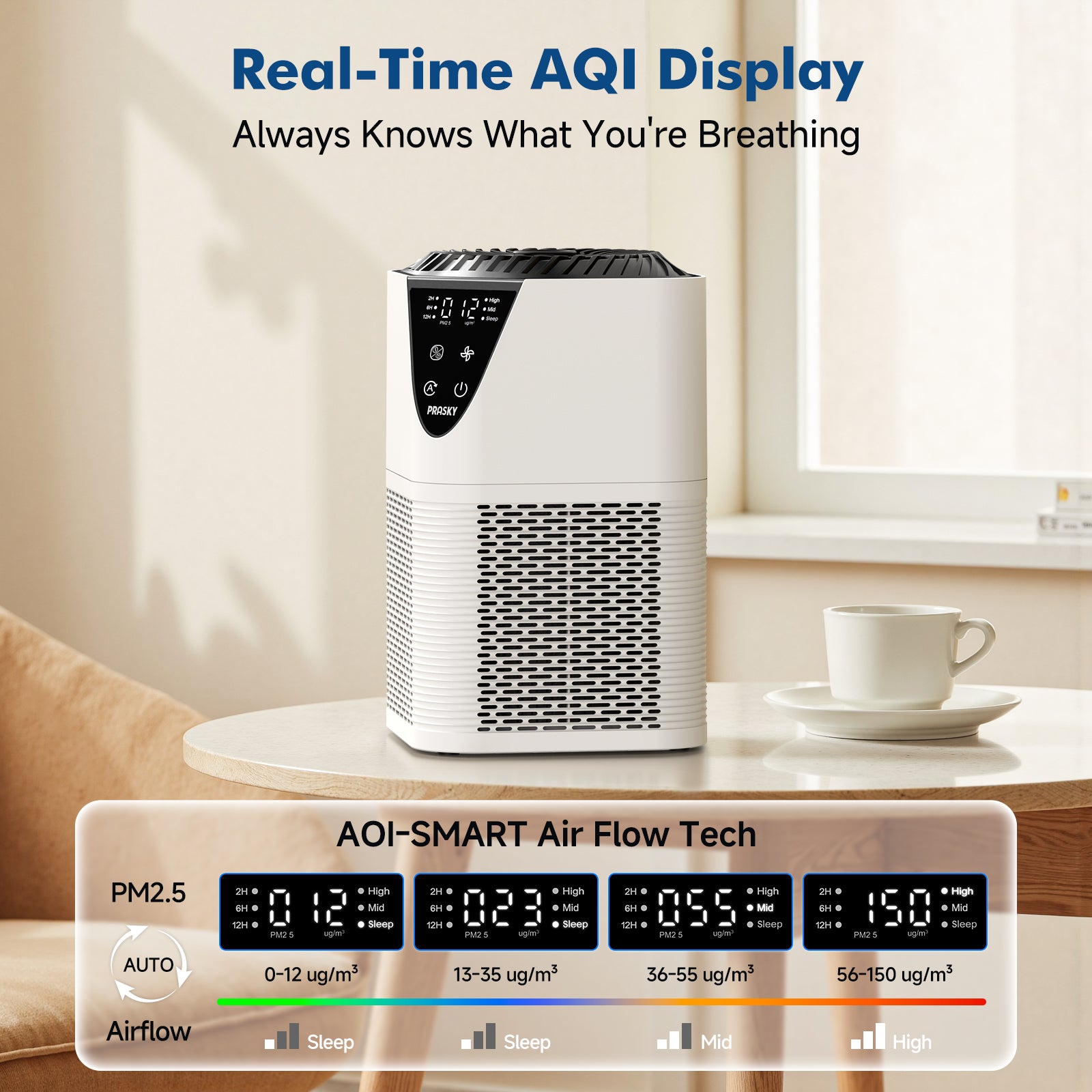 PRASKY Air Purifiers for Home up to 1076 ft², True HEPA Air Filter Cleaner, Remove Smoke Dust Pollen Pet Dander