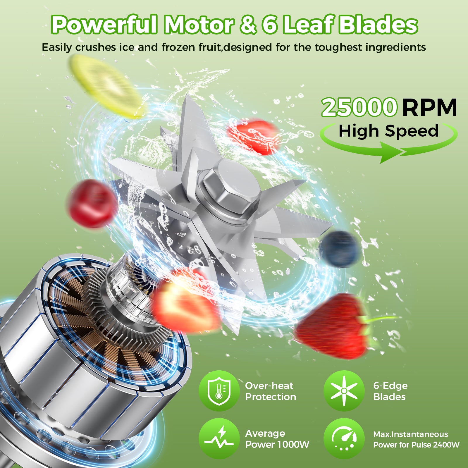 - 【MAX 2400W Powerful Motor and 6-Leaf Blades】 Our professional blender the powerful MAX 2400W blender for kitchen with up to 25000 RPM can break the cell walls of both soft and hard ingredients in seconds. The upgraded 6 lengthened sharp blades makes blending range wider and more efficient