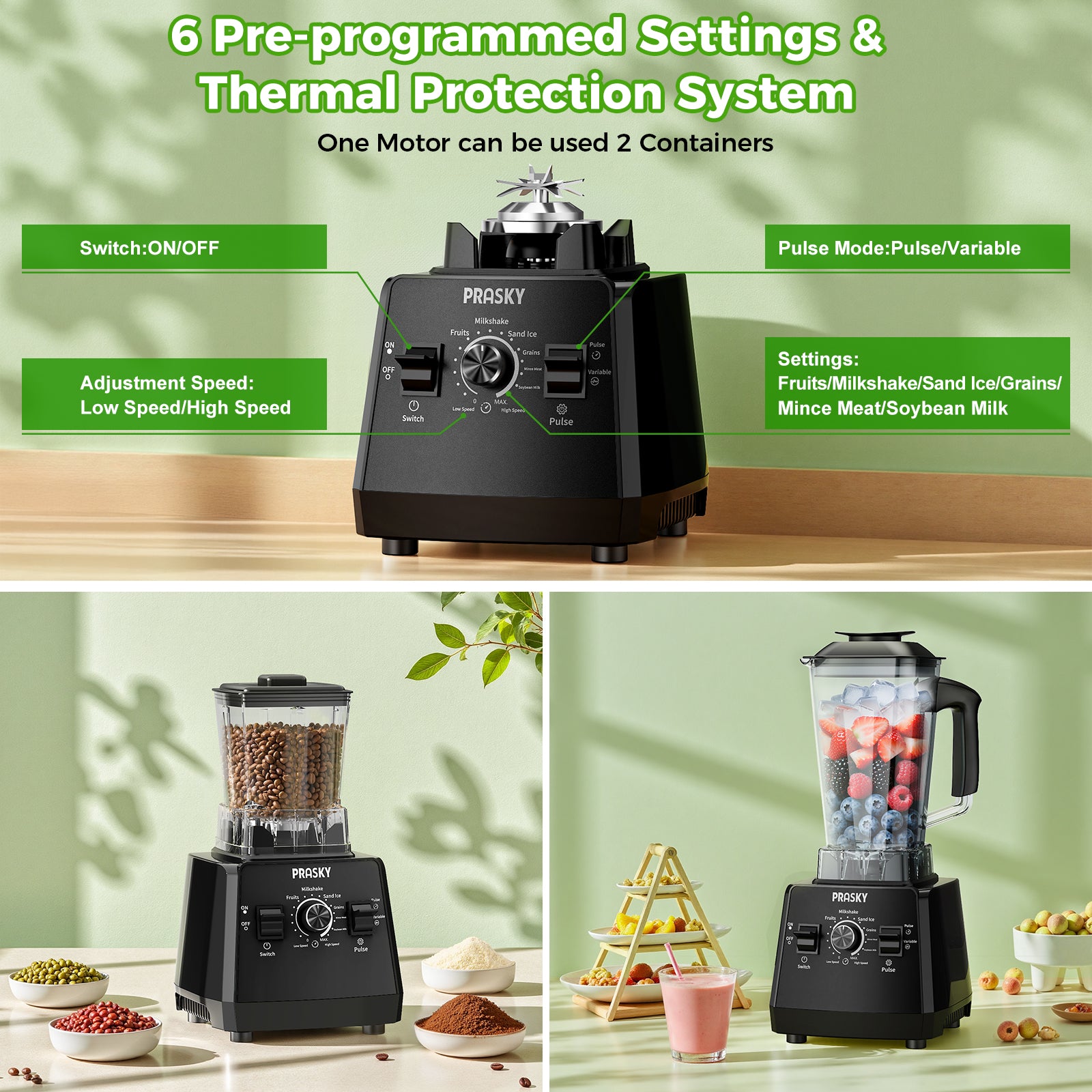 - 【6-adjustable Speed and Pulse Function】The PRASKY blender allows you to adjust the speed and pulse as you blend, giving you complete control over the texture of your drinks. You can create anything, such as smoothies, juicers, as coffee beans, grains, and spices